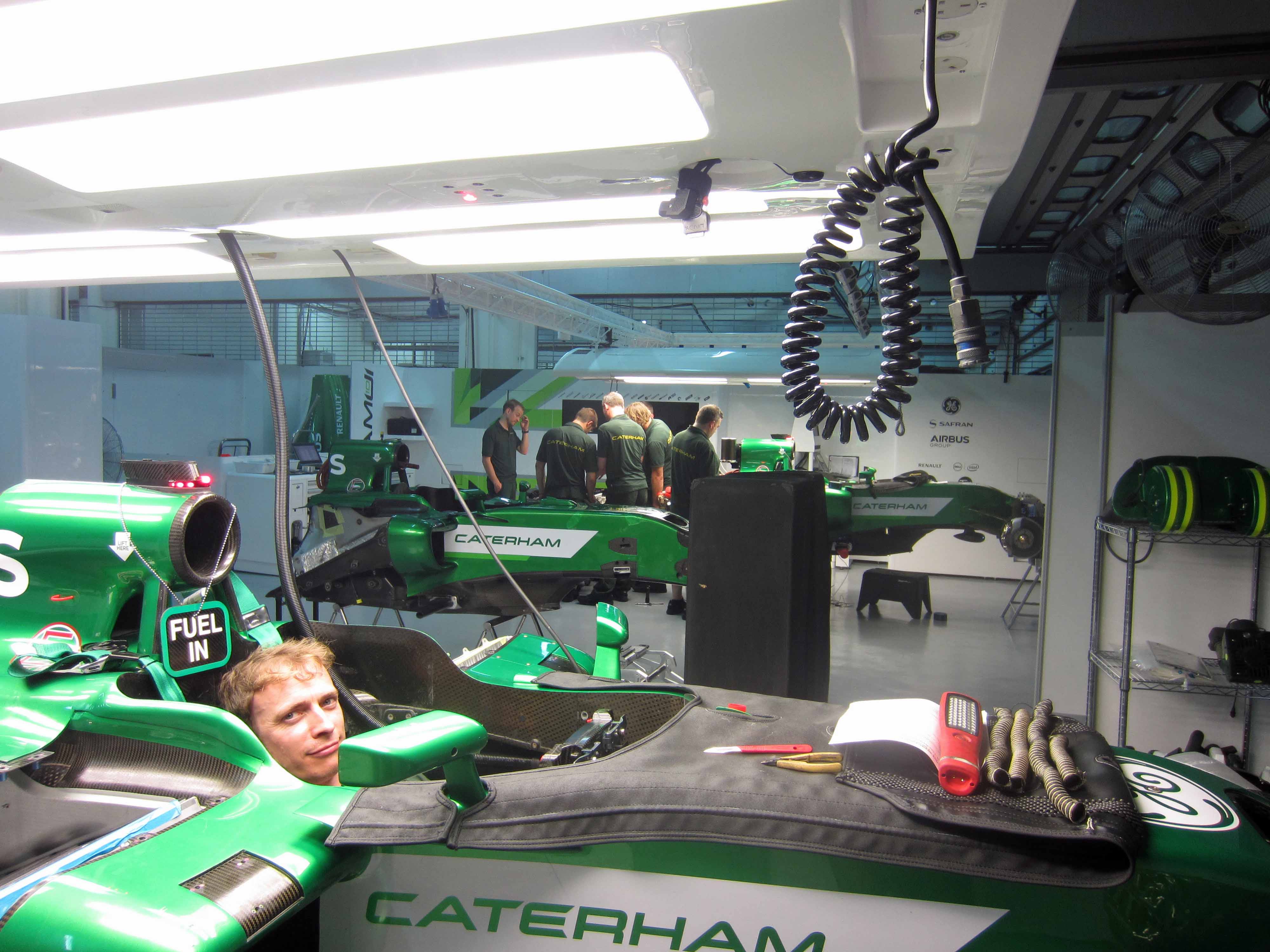 Marcus retired in his first race however continued driving Chassis #1 for the next race in Malaysia where Matt Smith from the team captured this rare photograph showing all three Caterham CT05's together in the pit. This is a very rare image as the "spare" chassis for a race is usually in the back of the transporter and in this case the spare (Chassis#2) was being prepared, just in case it was needed.