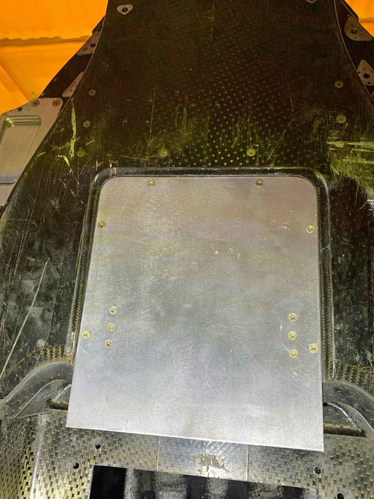 A brace plate has had to be placed under the monocoque to stop any probability of twist occuring as previously this area had the cars battery pack. Within this area is the battery. I have added a battery so the car can start on the button rather than need a team to start it.