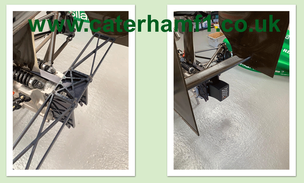 Then there was fixing the rear wing on to the car. I could have opted for a Formula Renault rear wing but that would have ruined the look of the car. Likewise there were no full rear wings for sale in the auction and I missed out on the Caterham RWEPs so had to but a used Formula 1 Carbon Fibre rear wing unit from another team. This then needed tweaking with design work, as did fitting a rear light as the Sadev Formula Renault gearbox was not the same as the Caterham rear crash structure originally used on the car.