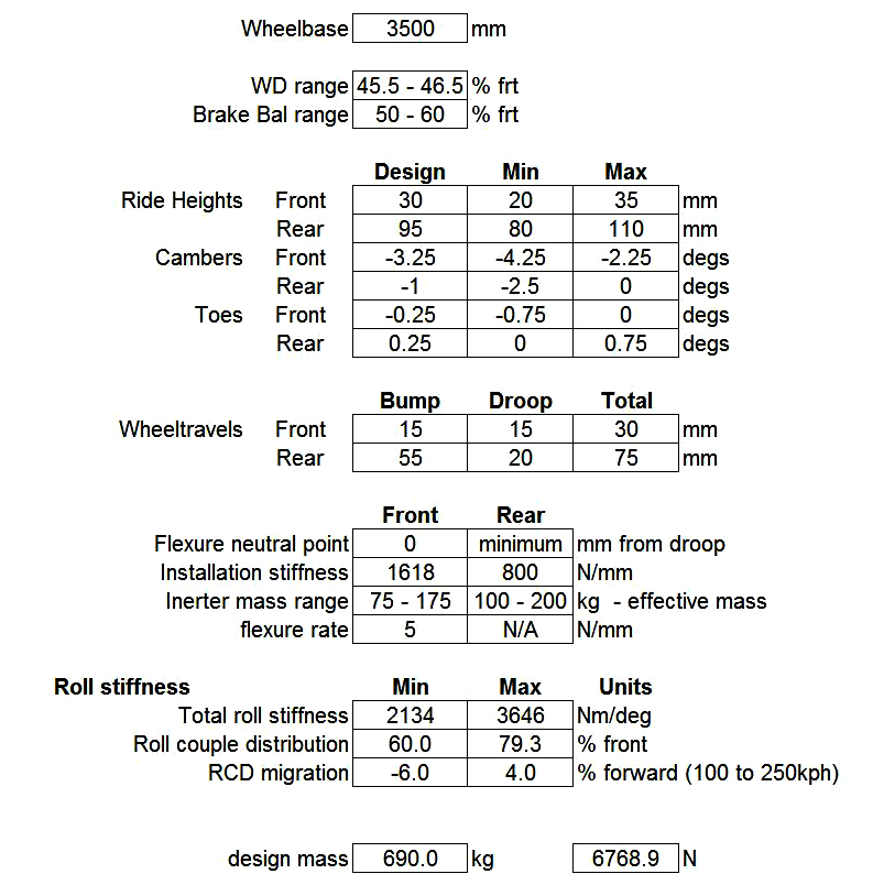 The car utilised two years experiance with the team to develop and the specification plus operating conditions are below.