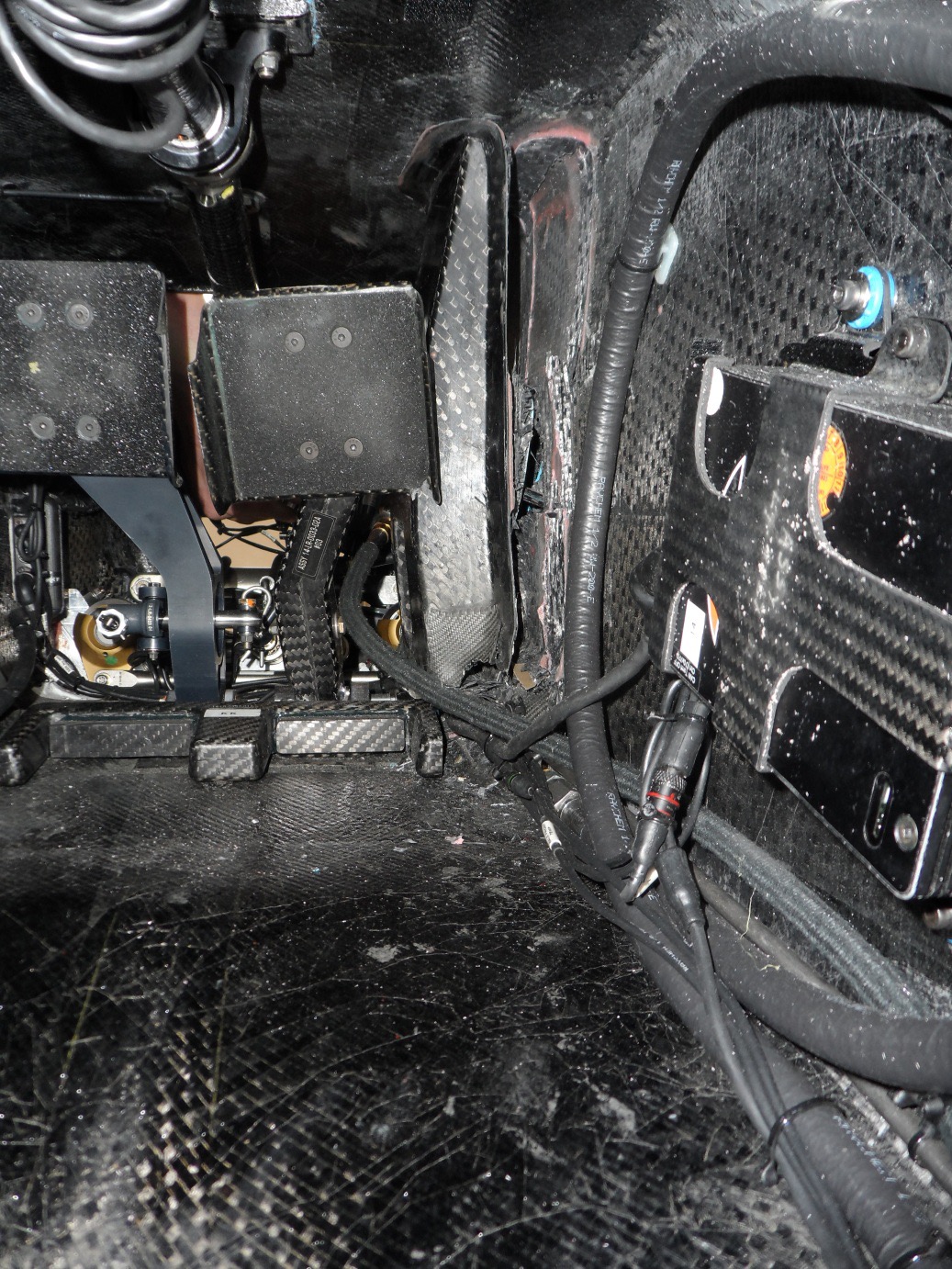 Below is the damage, highlighted in Malaysia to Chassis#2 which is why the team stopped using it until it was repaired. The Chassis was sold with the crack in the tub noted during the Administrators auction in 2015.