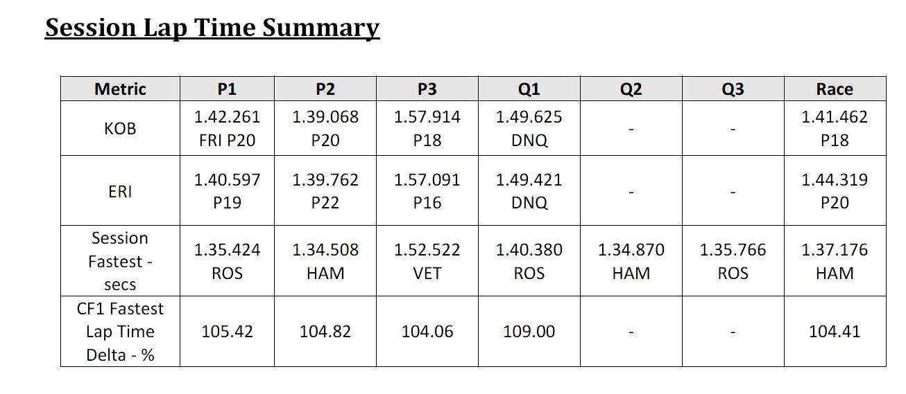 The car performed better than the 2013 CT03 against the opposition but as mentioned the lack of tyre temperature linked to the "over" cooling of the car was not great to say the least and the car was seconds away from top 10 in most qualifying sessions.